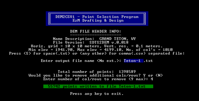 This was written to generate comma separated point files for Autocad contour line lisp program