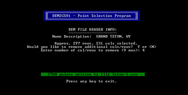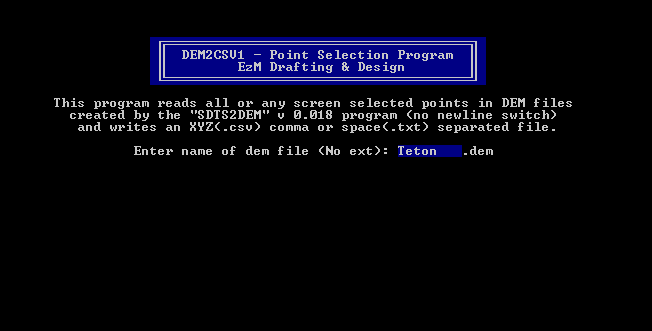 If you start this in a DOS window, it will change to a full DOS (640 x 480) graphics screen for point selection.