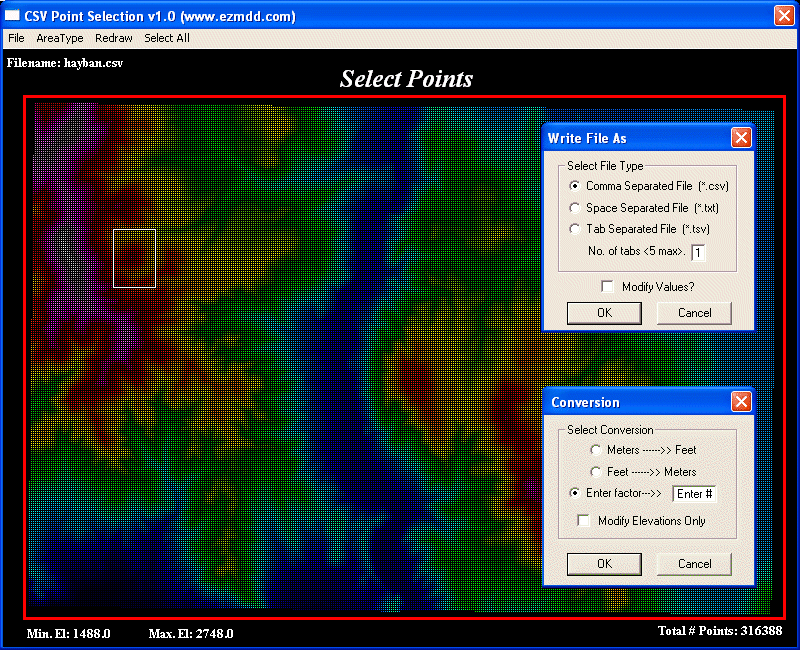This was written to generate comma separated point files for Autocad contour line lisp program