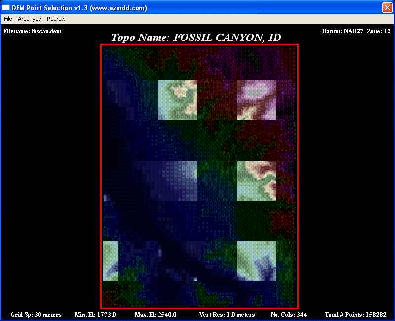 If you start this in a DOS window, it will change to a full DOS (640 x 480) graphics screen for point selection.